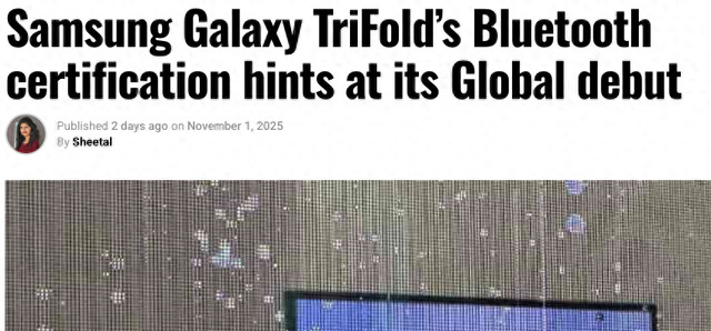 [环球网科技综合报道]11月4日消息,据跟踪三星消息的外媒报道,三星即将推出的三折叠智能手机GalaxyZTriFold已现身BluetoothSIG(蓝牙技术联盟)认证数据库,型号列表显示该机将推出SM-D6390、SM-D639N、SM-D639U、SM-D639U1及SM-D639B共五款机型。